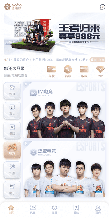 球王会旗下电子竞技部门完成了IM电竞的接入,本次接入将是一次强强联手的合作,至此球王会完成了电竞领域的赛事全覆盖,球王会将能为用户提供最全面的赛事竞猜服务。